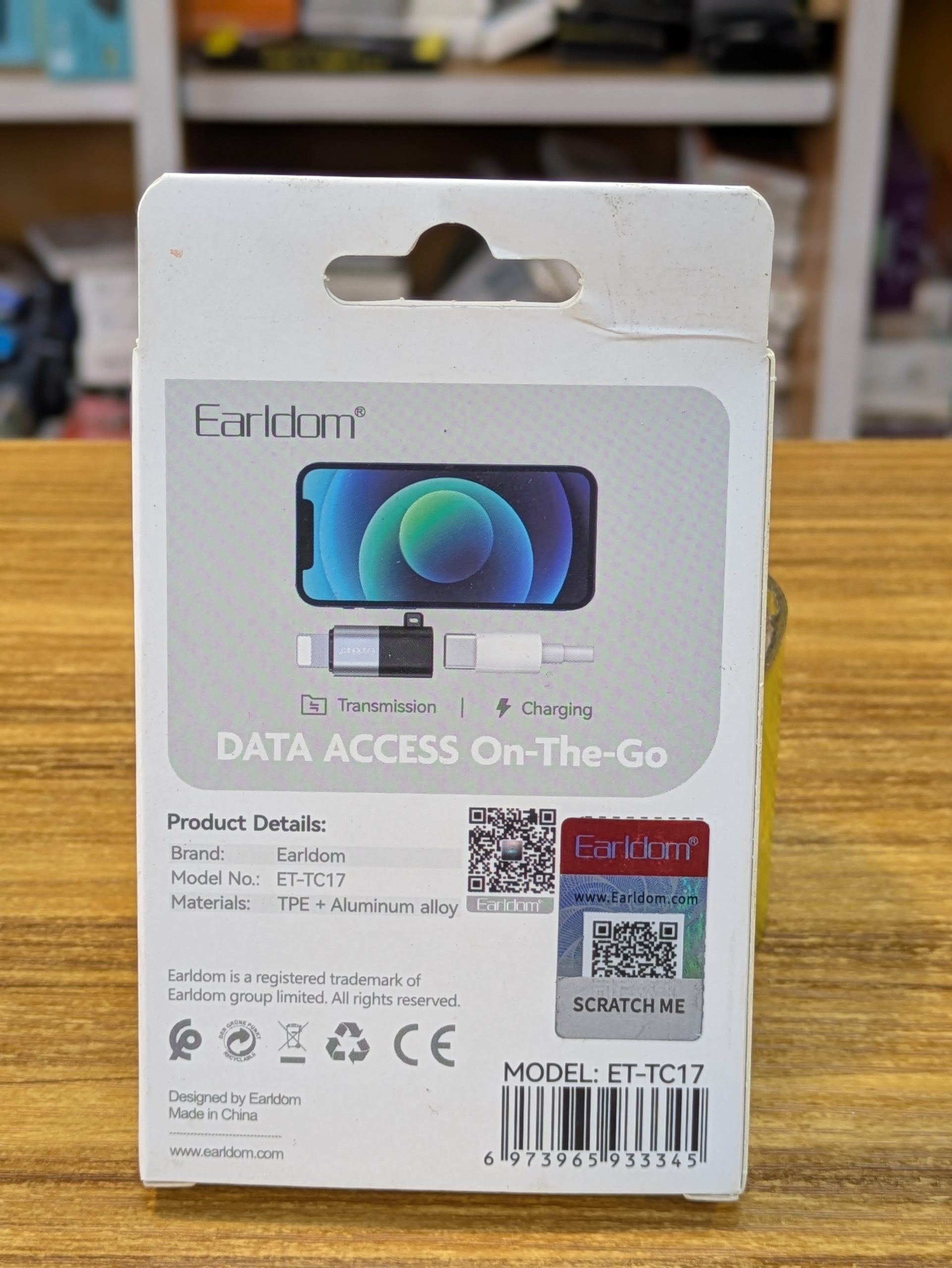 L’adaptateur Earldom TC17 convertit un port USB-C en connecteur Lightning à 8 broches, permettant de charger et synchroniser des appareils Apple depuis un appareil ou chargeur USB-C. Compact et léger, il est idéal pour voyager ou pour connecter vos accessoires Lightning à des appareils modernes sans port USB-A.