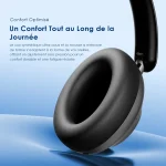 Le cuir synthétique ultra-doux et la mousse à mémoire de forme s’adaptent à la forme de vos oreilles, offrant un ajustement sans pression pour un confort durable et une fatigue réduite.