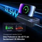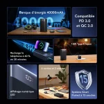 Avec son impressionnante capacité de 40 000 mAh, ce banc d’alimentation peut recharger complètement votre téléphone jusqu’à 8 fois et fournir une alimentation prolongée pour les ordinateurs portables, les tablettes et d’autres appareils puissants.