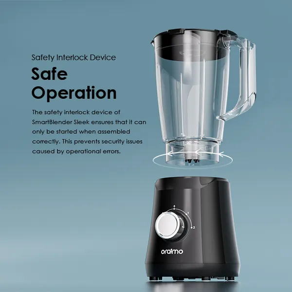 Le dispositif de verrouillage de sécurité du SmartBlender Sleek garantit son démarrage uniquement s’il est correctement assemblé. Cela évite les problèmes de sécurité causés par des erreurs de manipulation.