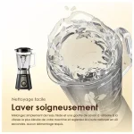 Les lames en acier inoxydable trempé combinées à un puissant moteur de puissance maximale de 500 watts permettent de broyer le contenu rapidement et facilement, créant ainsi des boissons onctueuses et glacées en un rien de temps.