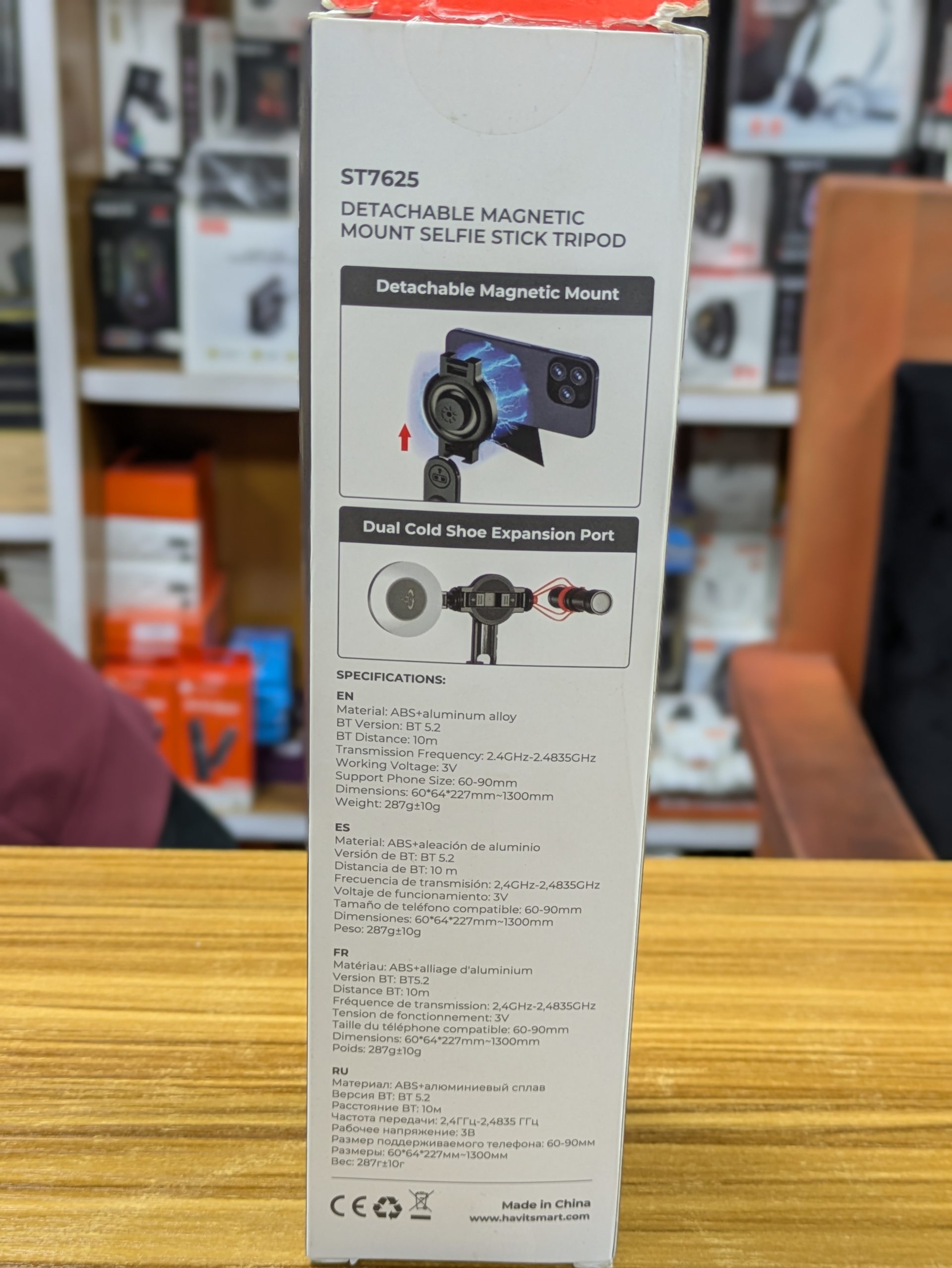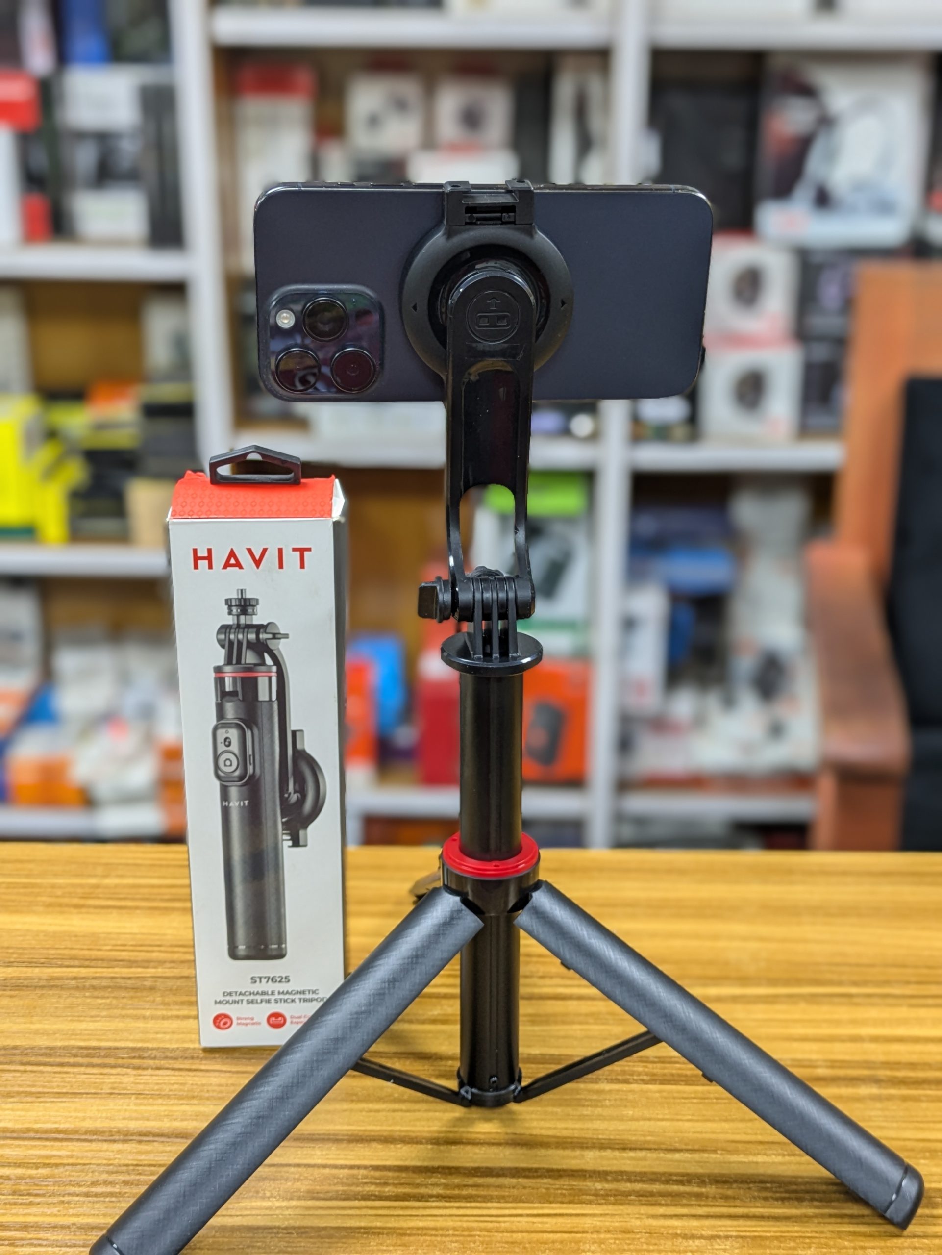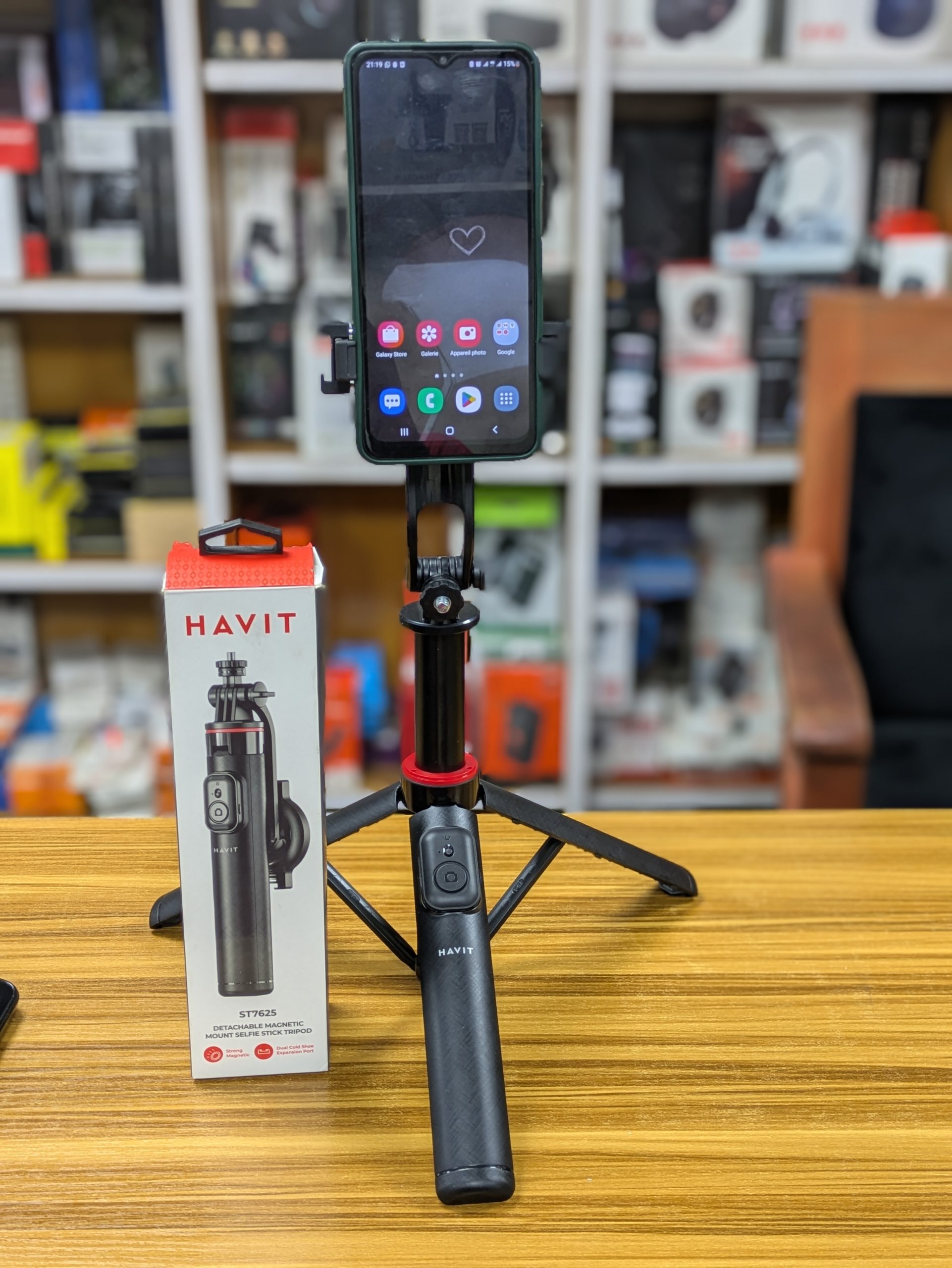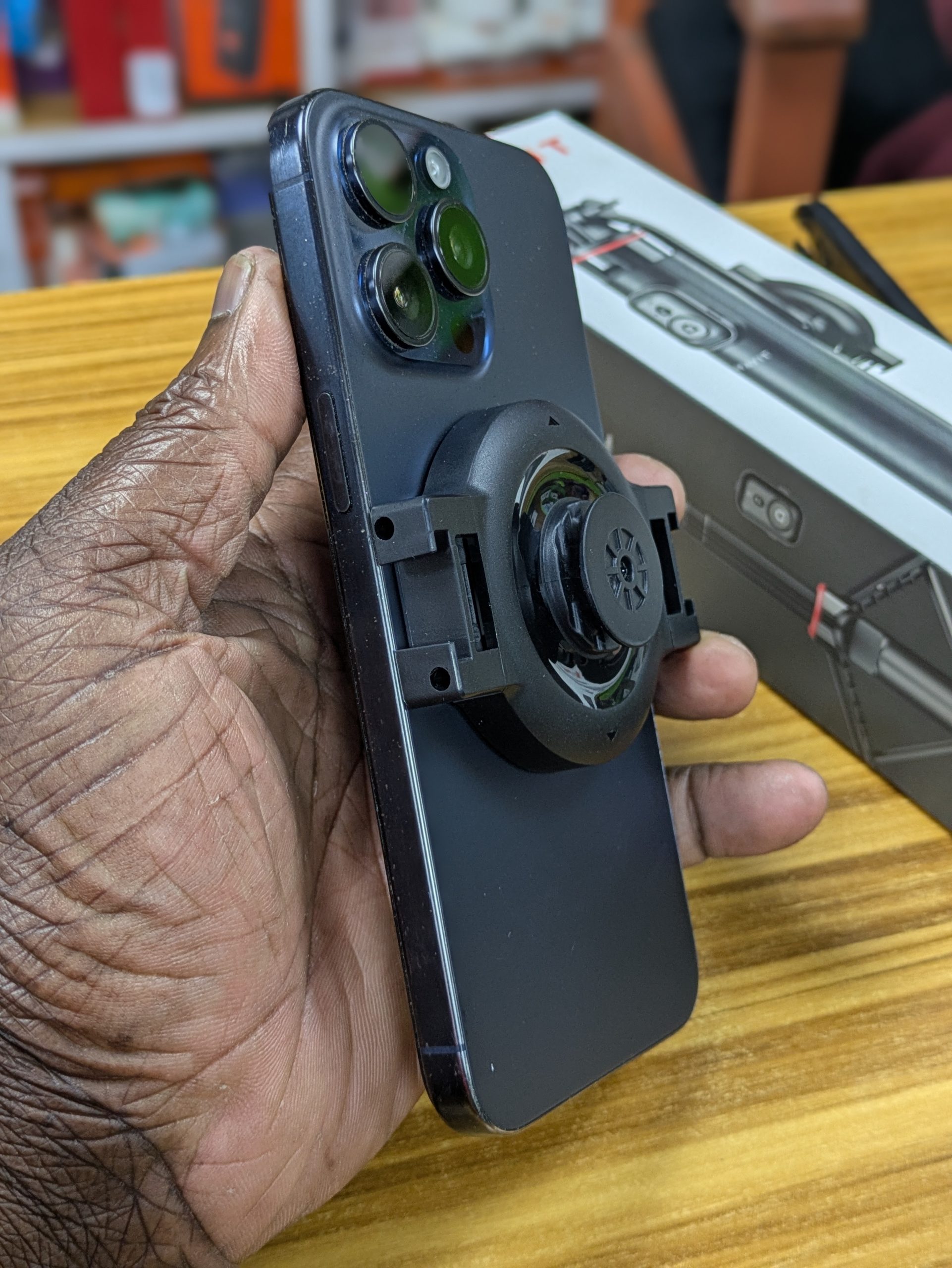 Clip téléphonique détachable, filetage standard ¼″ pour fixer d’autres accessoires (éclairage, micro…). |