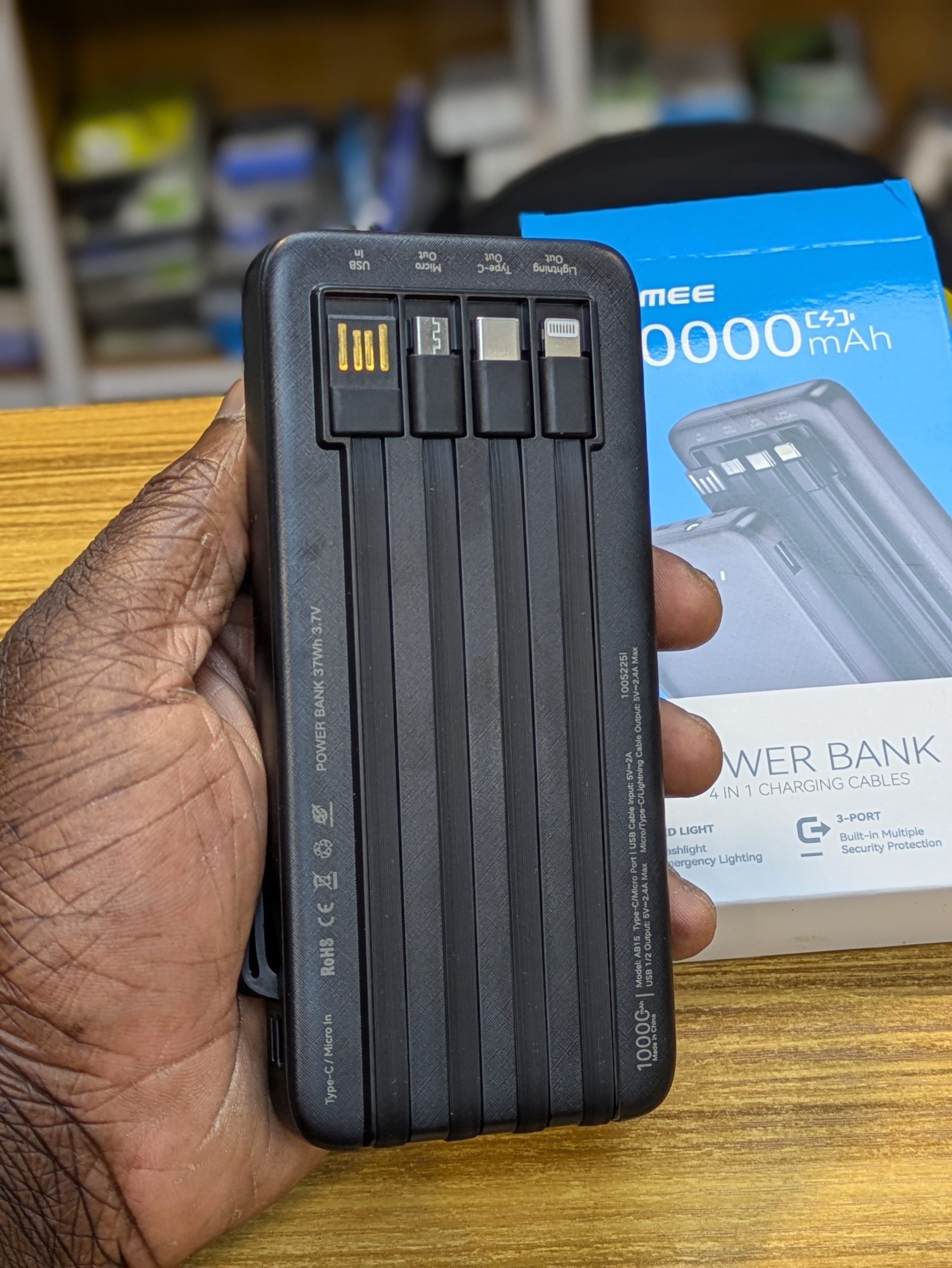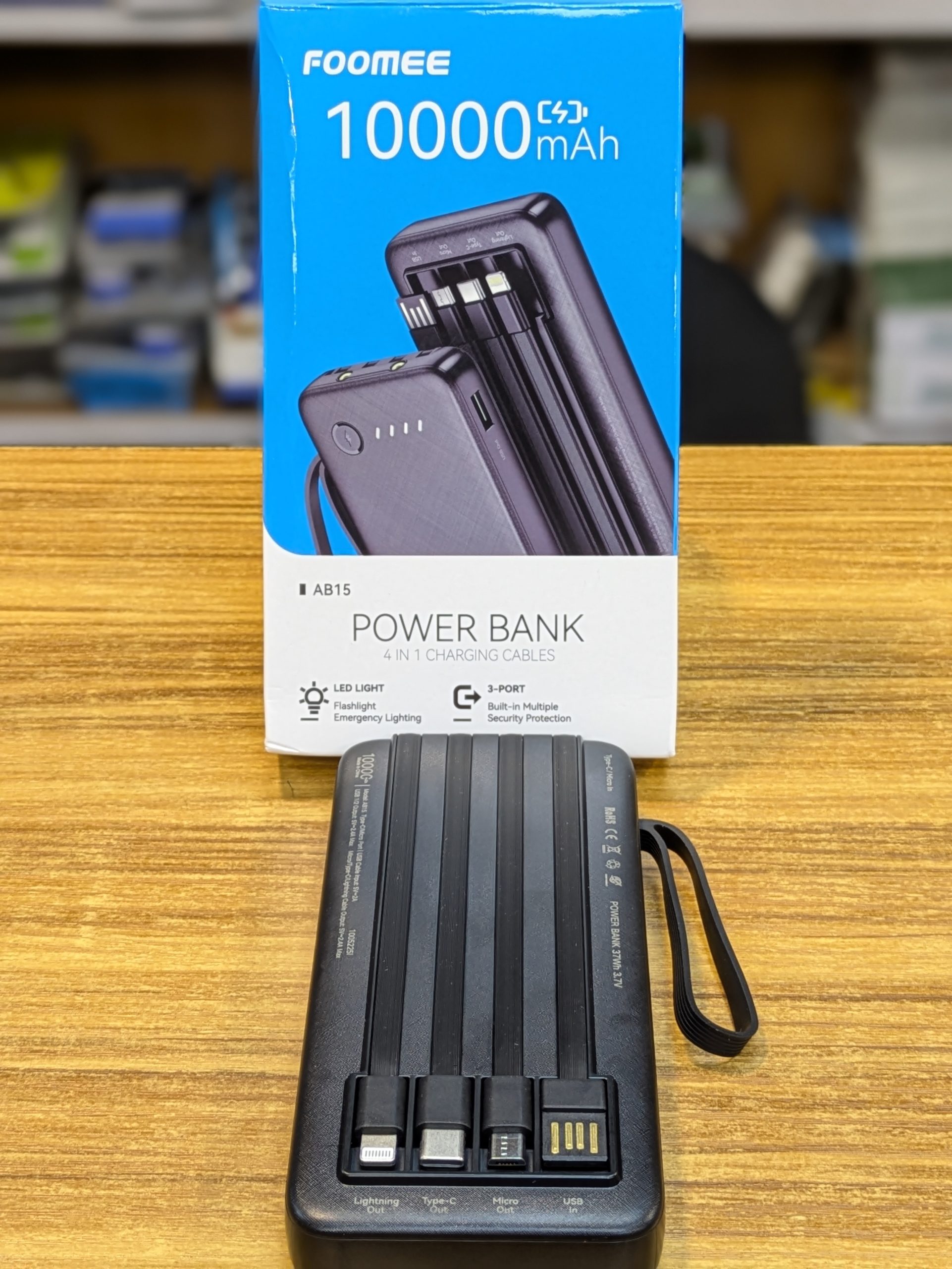 La Power Bank FOOMEE 10000 mAh est une batterie externe pratique avec câbles de charge intégrés, idéale pour recharger rapidement vos smartphones et accessoires en déplacement. Compacte et facile à transporter, elle offre une bonne autonomie pour un usage quotidien.