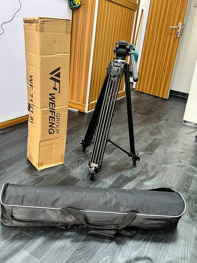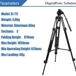 Accessoires inclus : Trépied avec tête fluide, poignée, plaque rapide, sac de transport