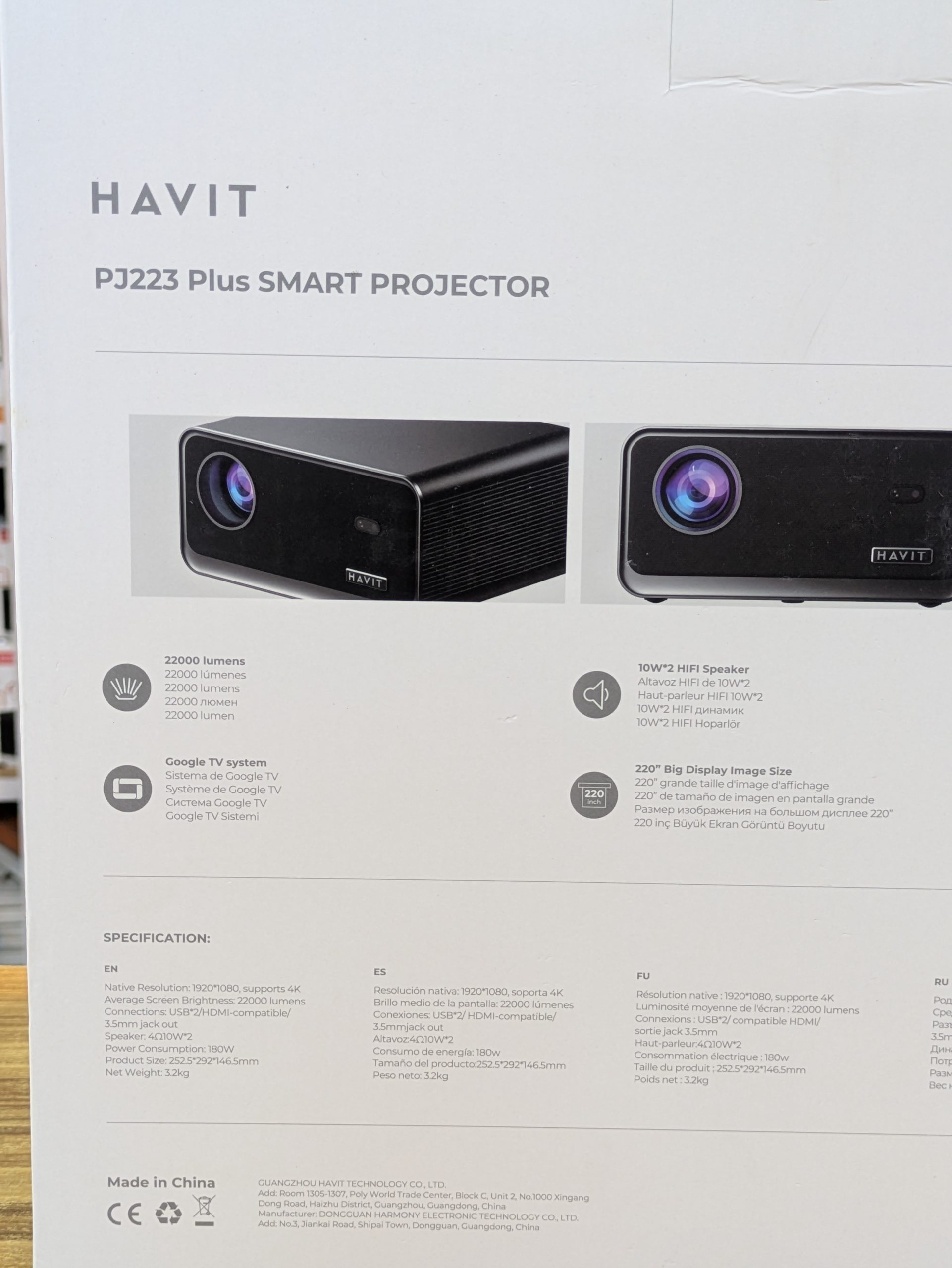 Luminosité Exceptionnelle : Avec ses 22 000 lumens, ce projecteur offre une image incroyablement brillante et détaillée, même dans des environnements avec une légère lumière ambiante.