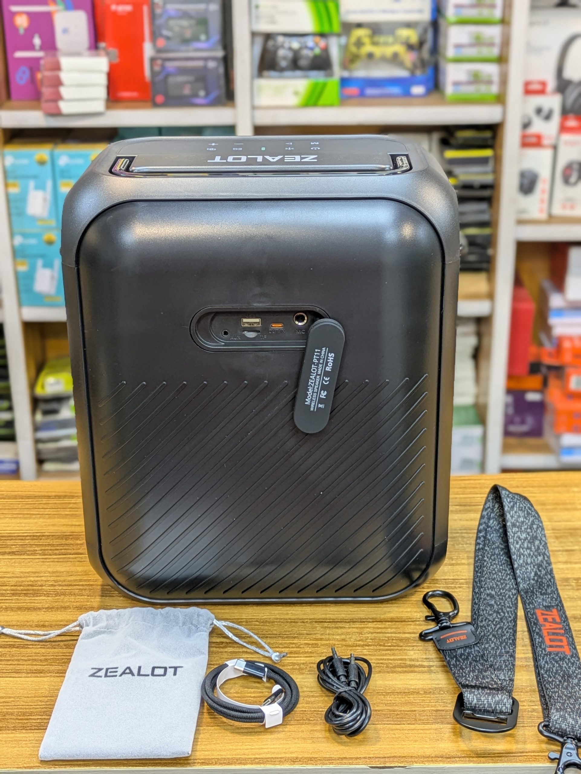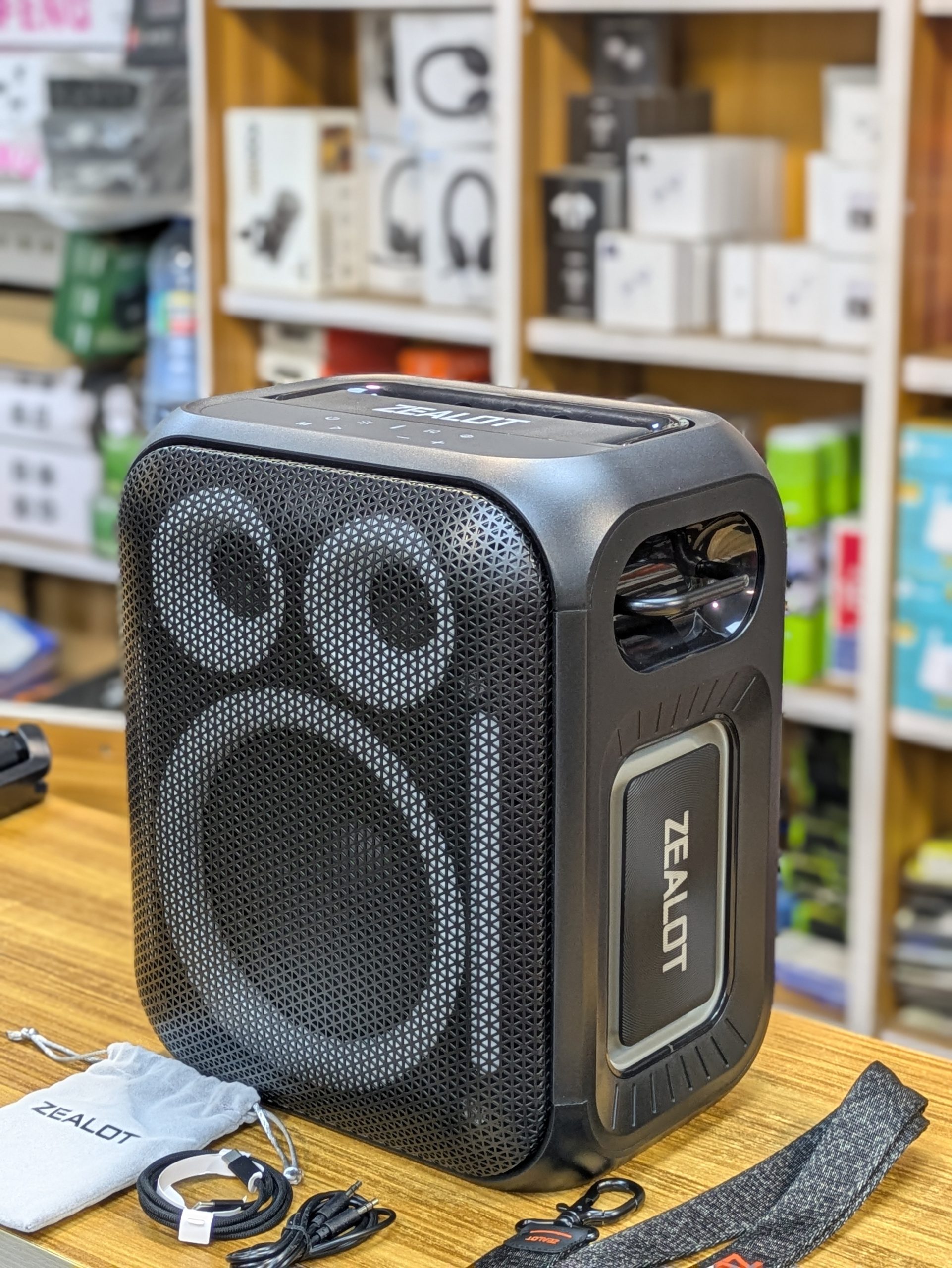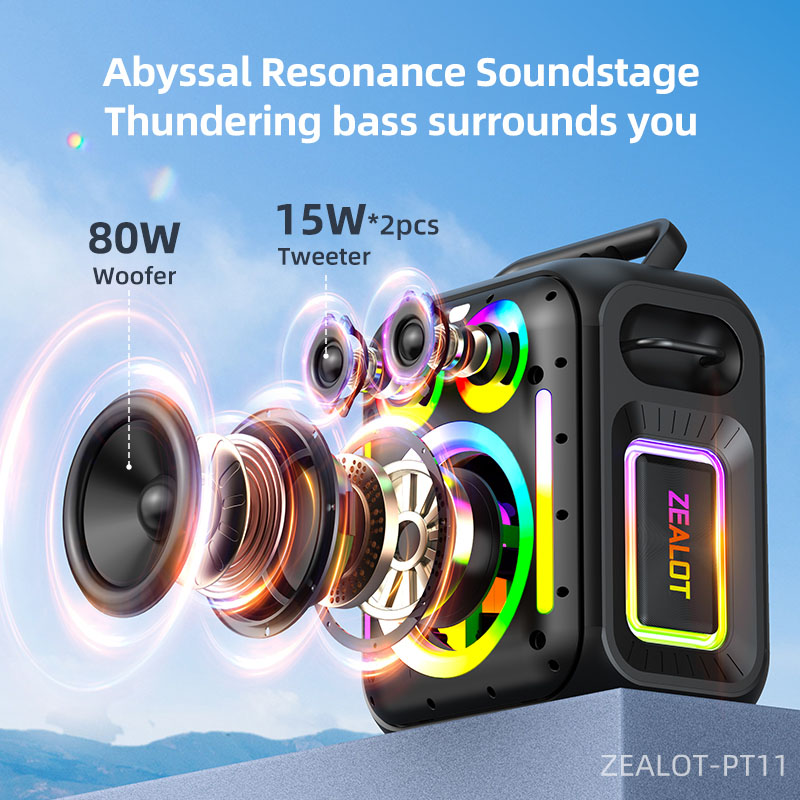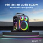 La Zealot PT11 est une enceinte Bluetooth puissante de type karaoké conçue pour les fêtes, le plein air et les événements. Elle offre un son puissant, un éclairage RGB, plusieurs modes de lecture (Bluetooth, USB, carte mémoire, AUX) et une grande batterie pour une bonne autonomie.