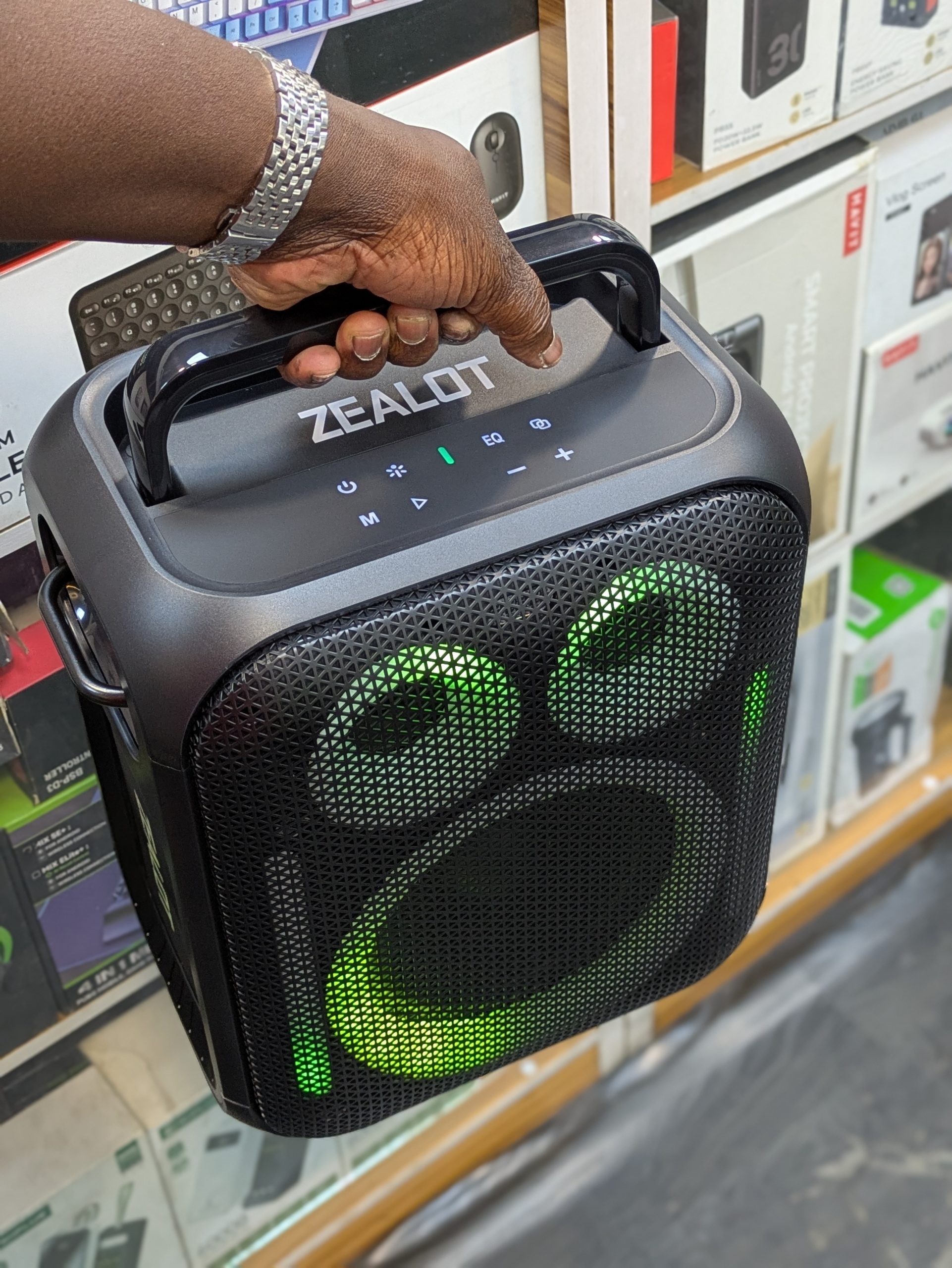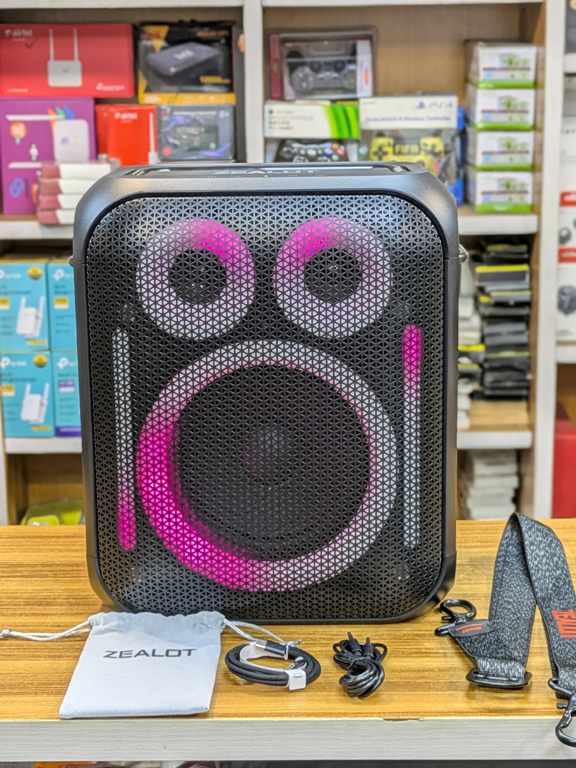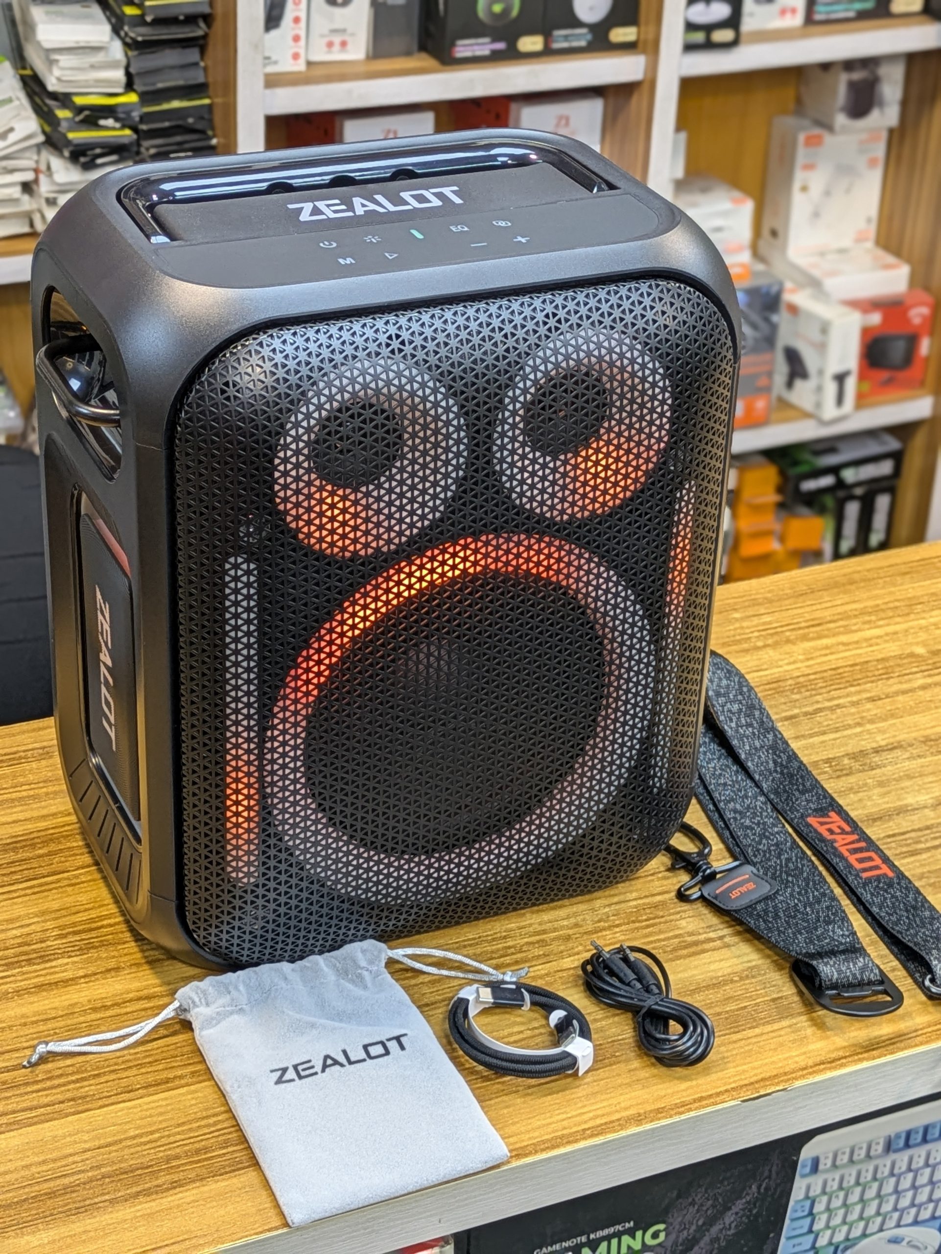 La Zealot PT11 est une enceinte Bluetooth puissante de type karaoké conçue pour les fêtes, le plein air et les événements. Elle offre un son puissant, un éclairage RGB, plusieurs modes de lecture (Bluetooth, USB, carte mémoire, AUX) et une grande batterie pour une bonne autonomie.